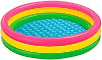Intex Sunset Glow Baby Pool , Intex Inflatable Kids Pool 114cm x 25cm – 3 Ring Rainbow Paddling Pool with Soft Inflatable Floor for Garden & Outdoor Use