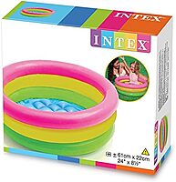 Intex sunset Glow baby pool ,Inflatable Baby Pool 61cm x 22cm – 3 Ring Rainbow Kiddie Pool with Soft Inflatable Floor for Toddlers Indoor & Outdoor Use